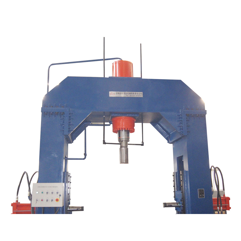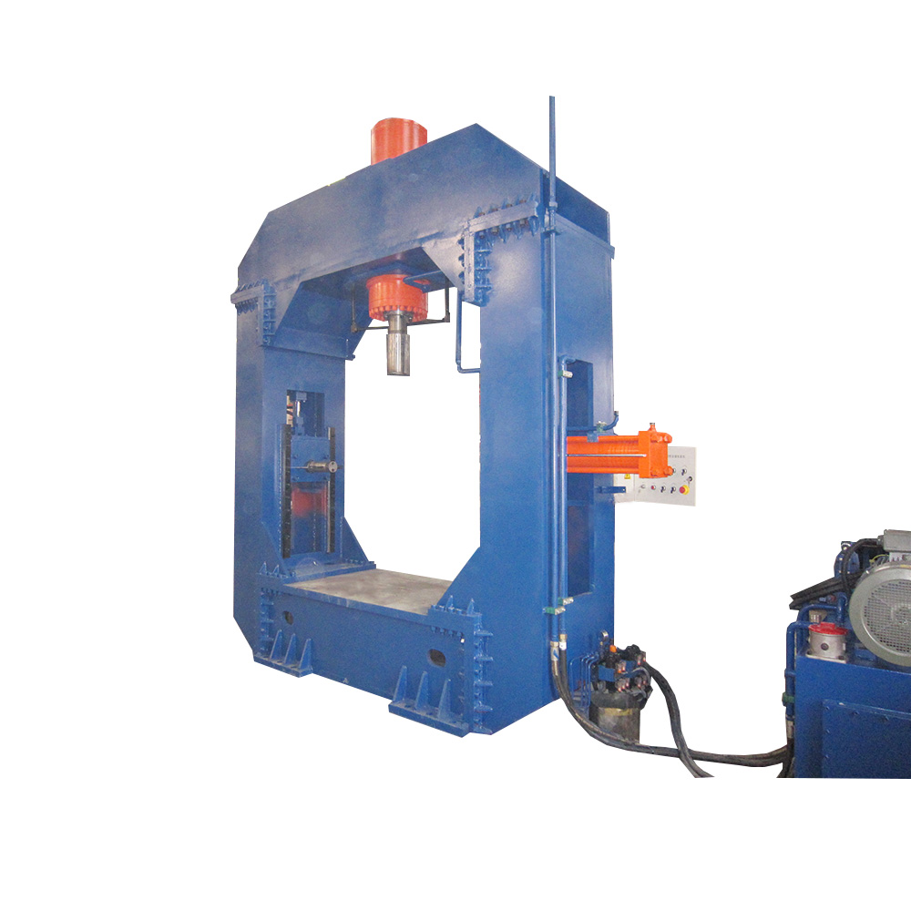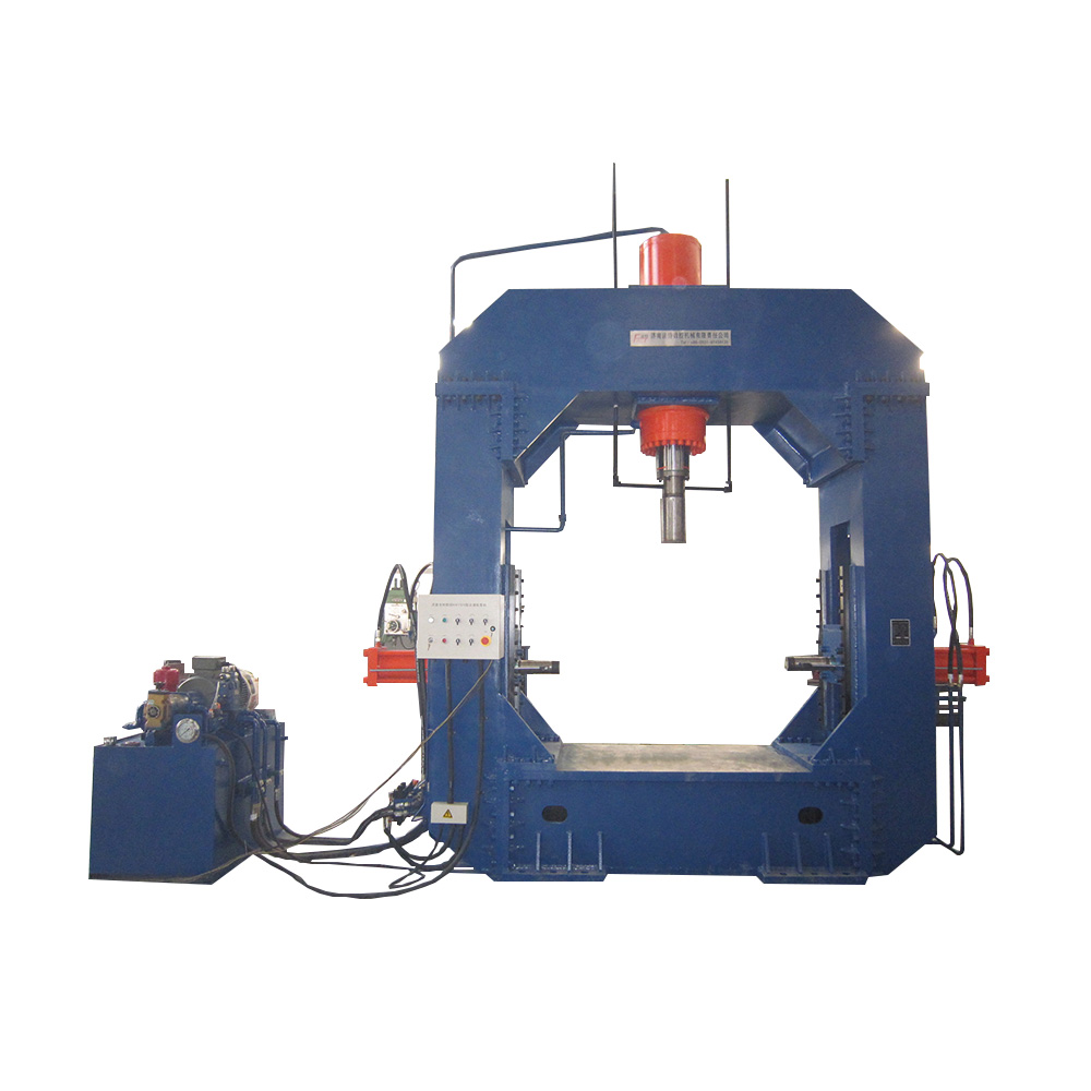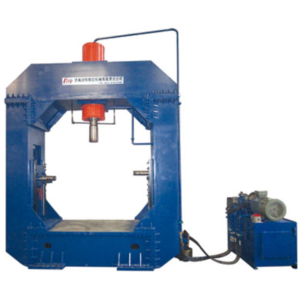 設(shè)備由龍門(mén)式液壓機(jī)、液壓站、控制柜、電動(dòng)托架、托架導(dǎo)軌等部分組成。