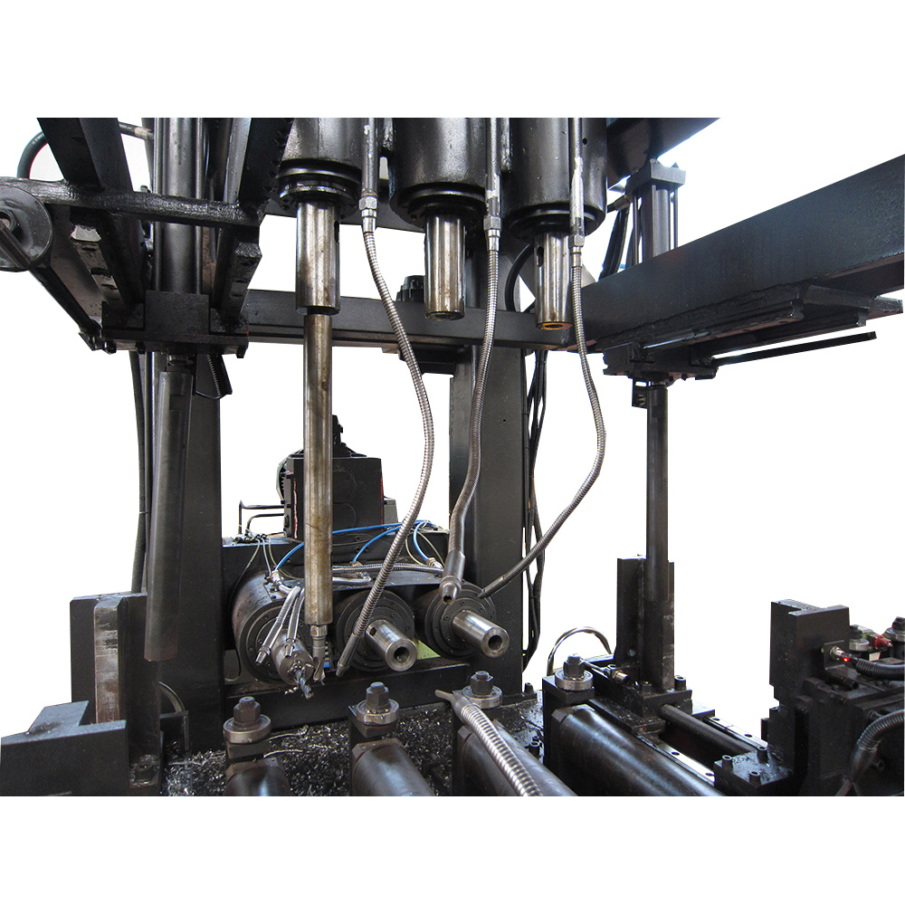 本機(jī)床主要用于H型鋼、槽鋼和箱型梁的鉆孔加工,廣泛用于立體車(chē)庫(kù)、鋼結(jié)構(gòu)建筑、橋梁、塔桅和網(wǎng)架等行業(yè)。4軸數(shù)控型鋼三維鉆床采用四個(gè)伺服電機(jī)實(shí)現(xiàn)2個(gè)垂直方向、1個(gè)水平方向和1個(gè)長(zhǎng)度的鉆孔定位。3個(gè)鉆孔面上,每個(gè)面有3個(gè)鉆孔主軸,每個(gè)面上的3個(gè)鉆孔主軸由一臺(tái)變頻電機(jī)驅(qū)動(dòng),鉆孔主軸為自控行程鉆孔主軸,工件一次通過(guò)設(shè)備后三個(gè)面上的孔均可加工完畢,效率高,孔位精度高,是鋼結(jié)構(gòu)制造業(yè)中保證質(zhì)量的必不可少的設(shè)備。